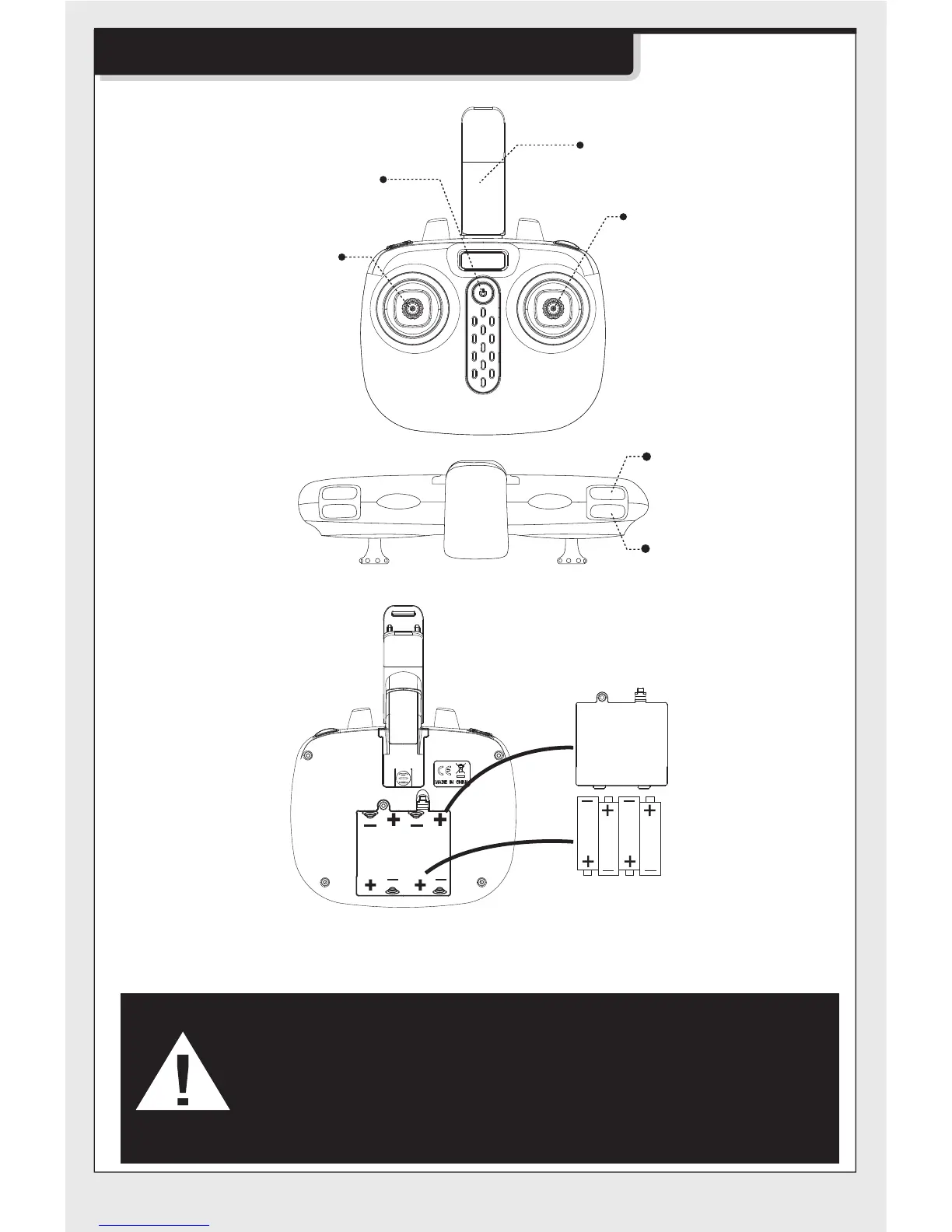 remote control. Correctly place 4 x AA alkaline batteries in the battery box