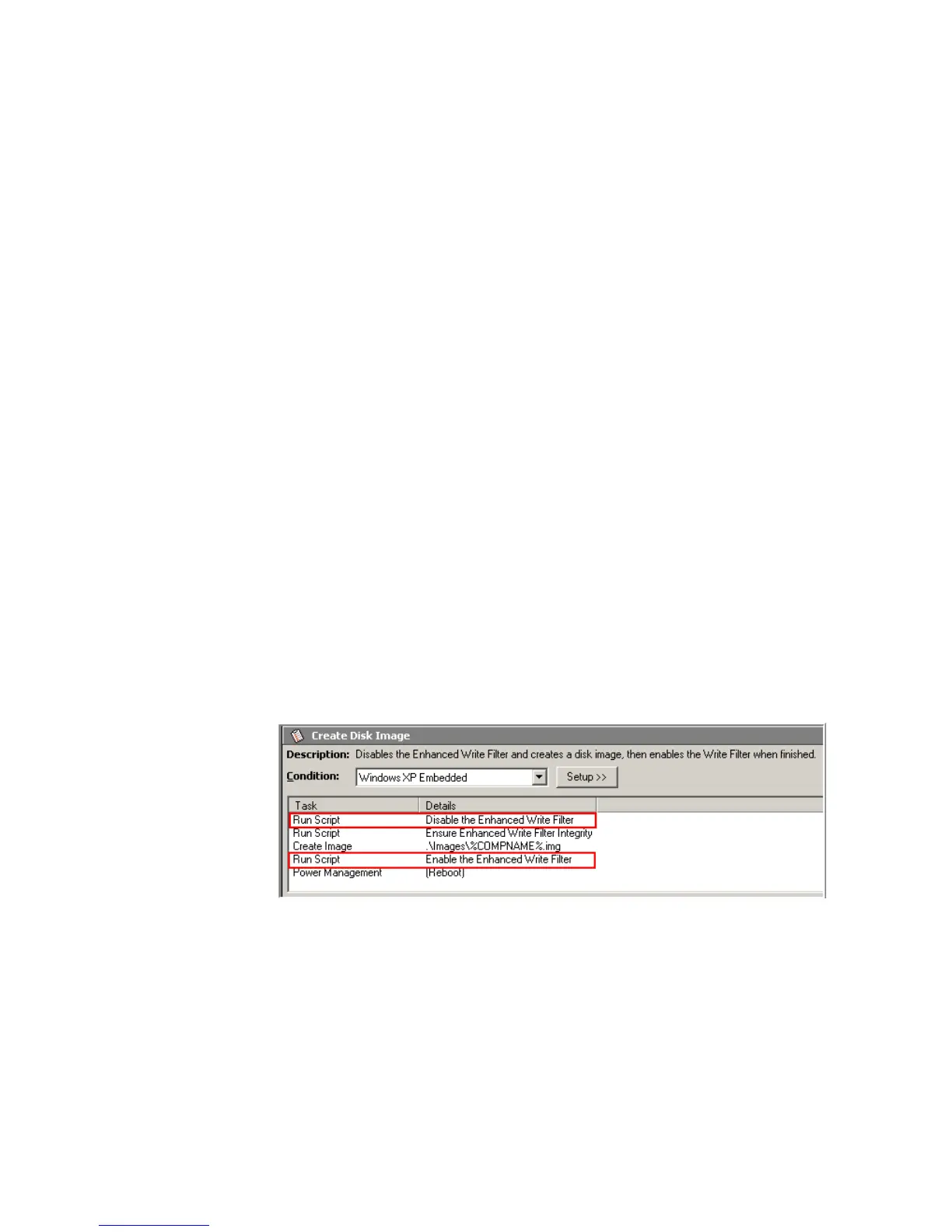 Notice that the first line item disables the Enhanced Write Filter, and the second line