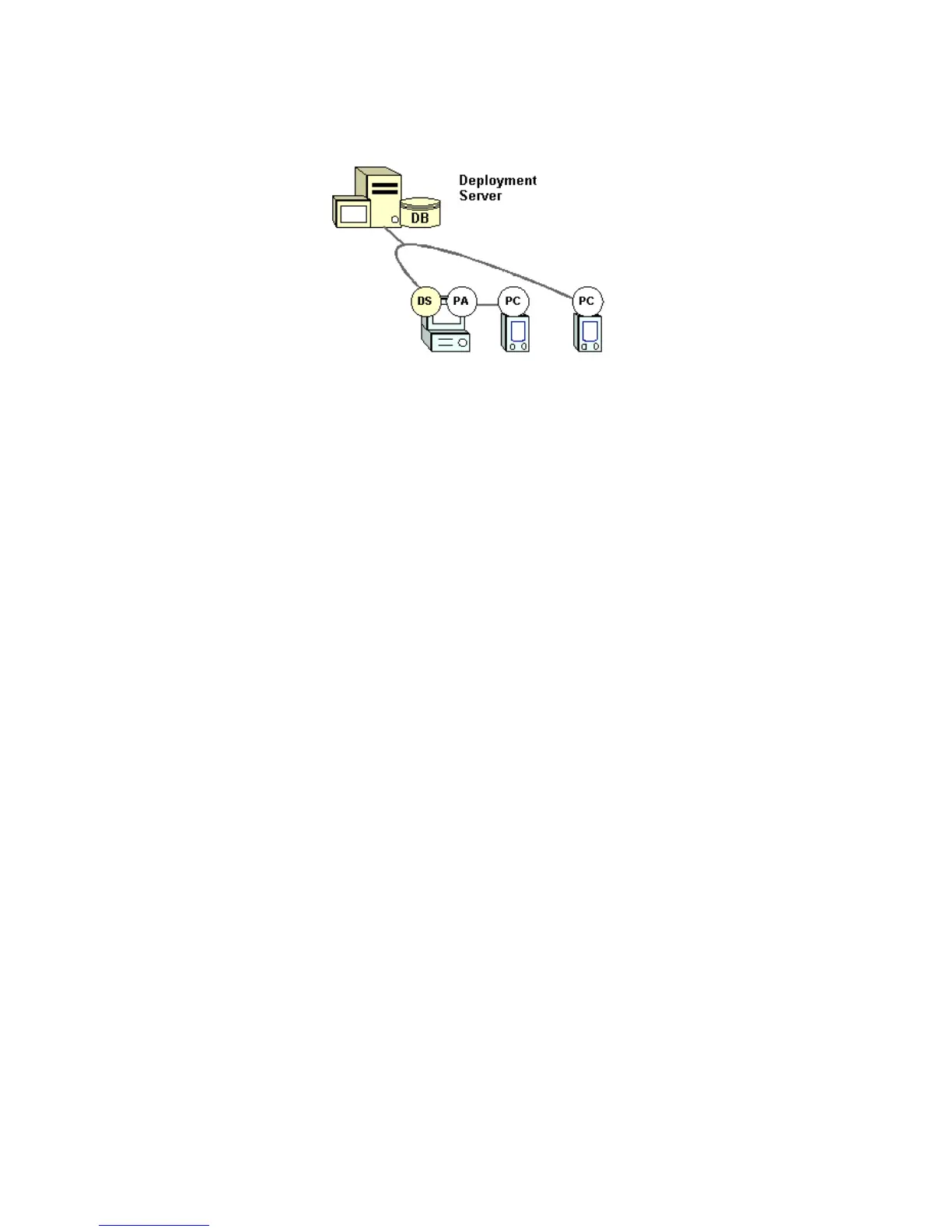 between the Pocket PC Client on the handheld and the Deployment Server. ActiveSync is required for the