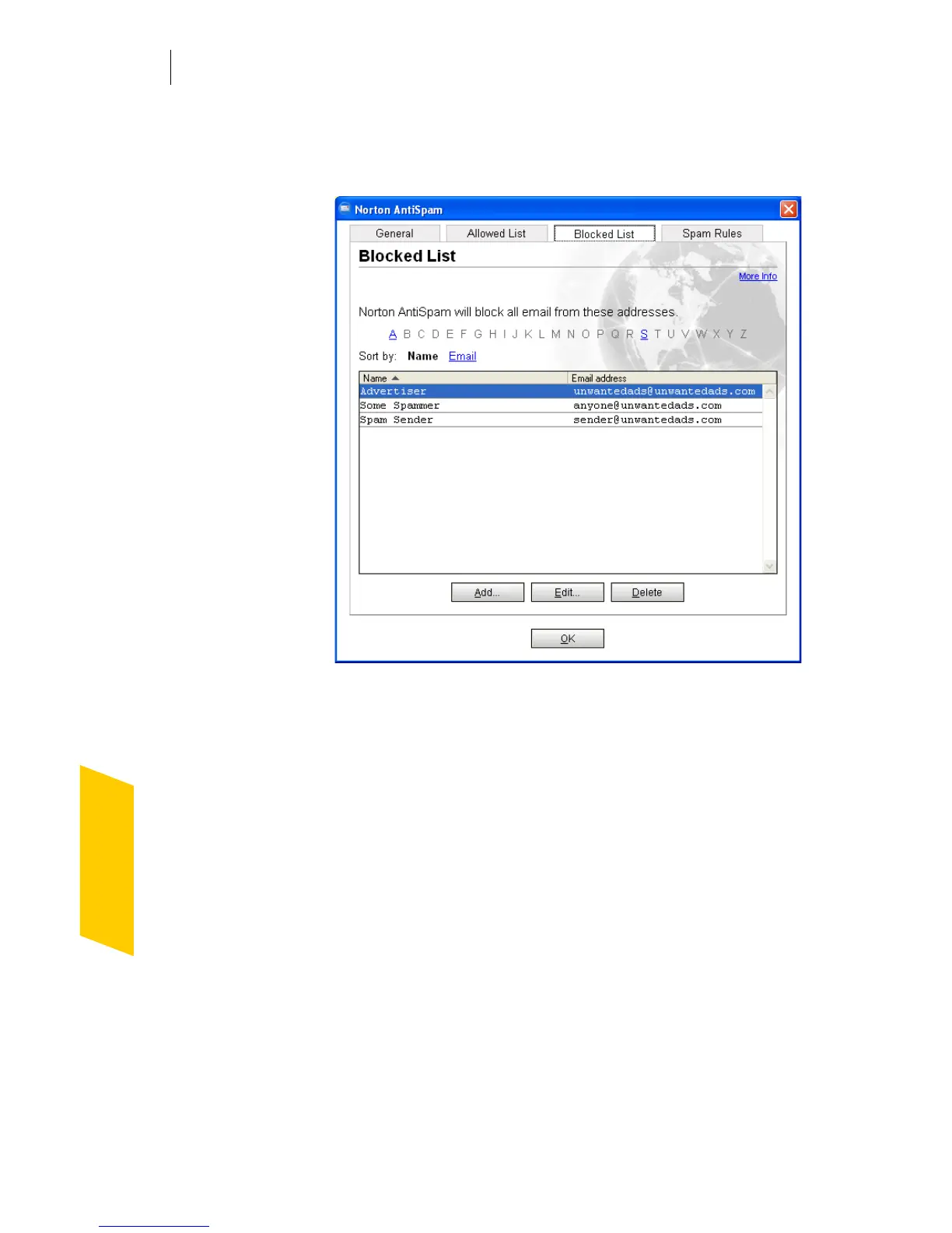 4 Click OK to close the Add Address to Blocked List