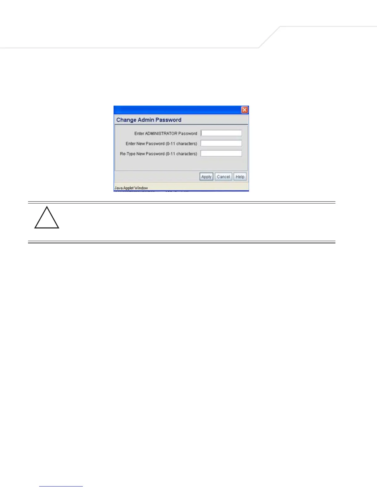 administrative password accordingly.