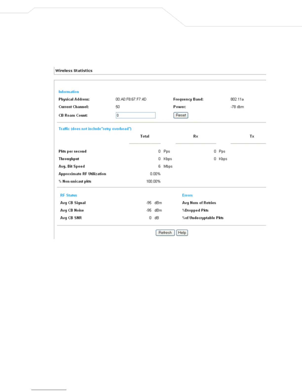 Figure 4.1 Wireless Statistics Screen