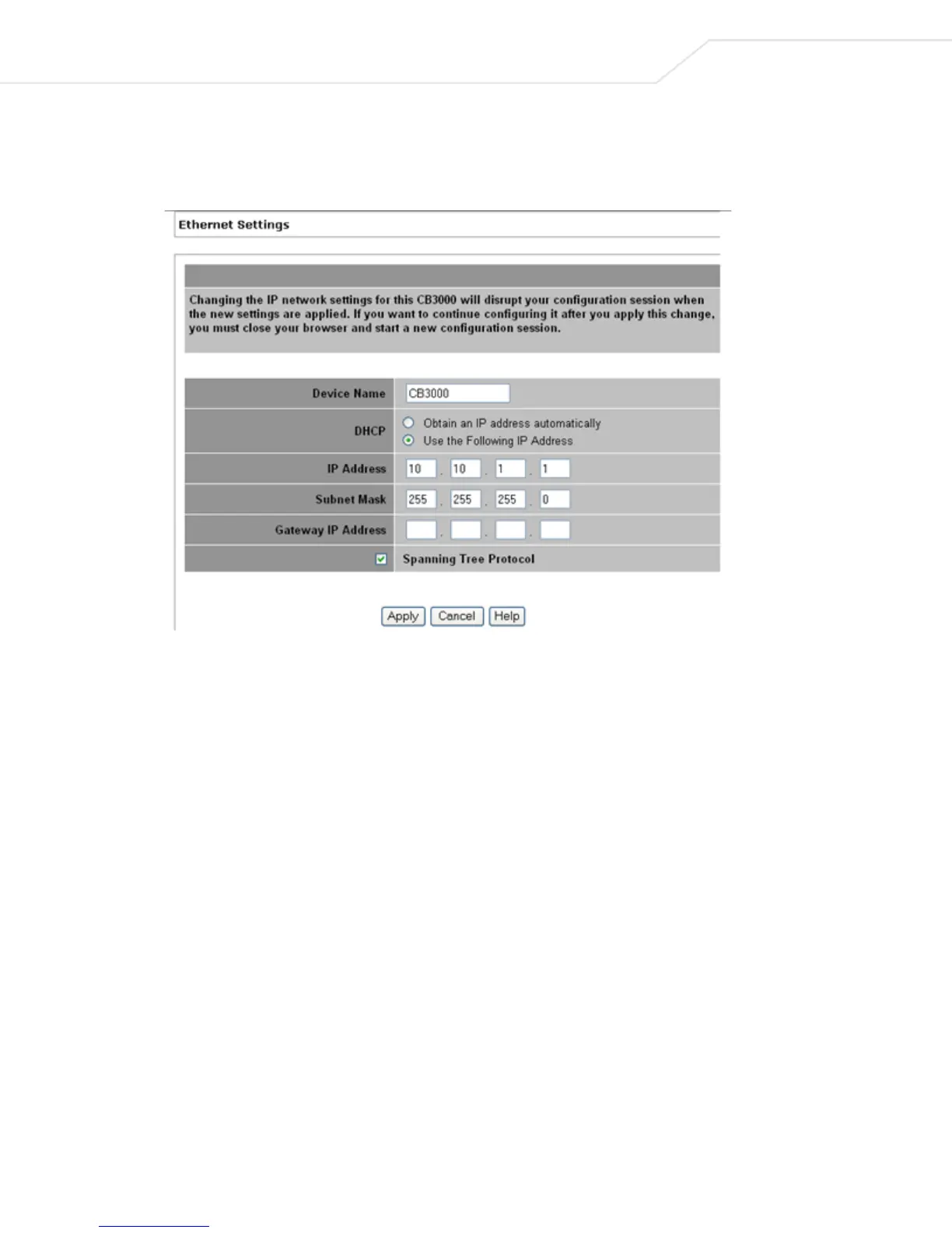 • Received – Displays statistics for the cumulative packets, bytes, and errors received since the CB3000