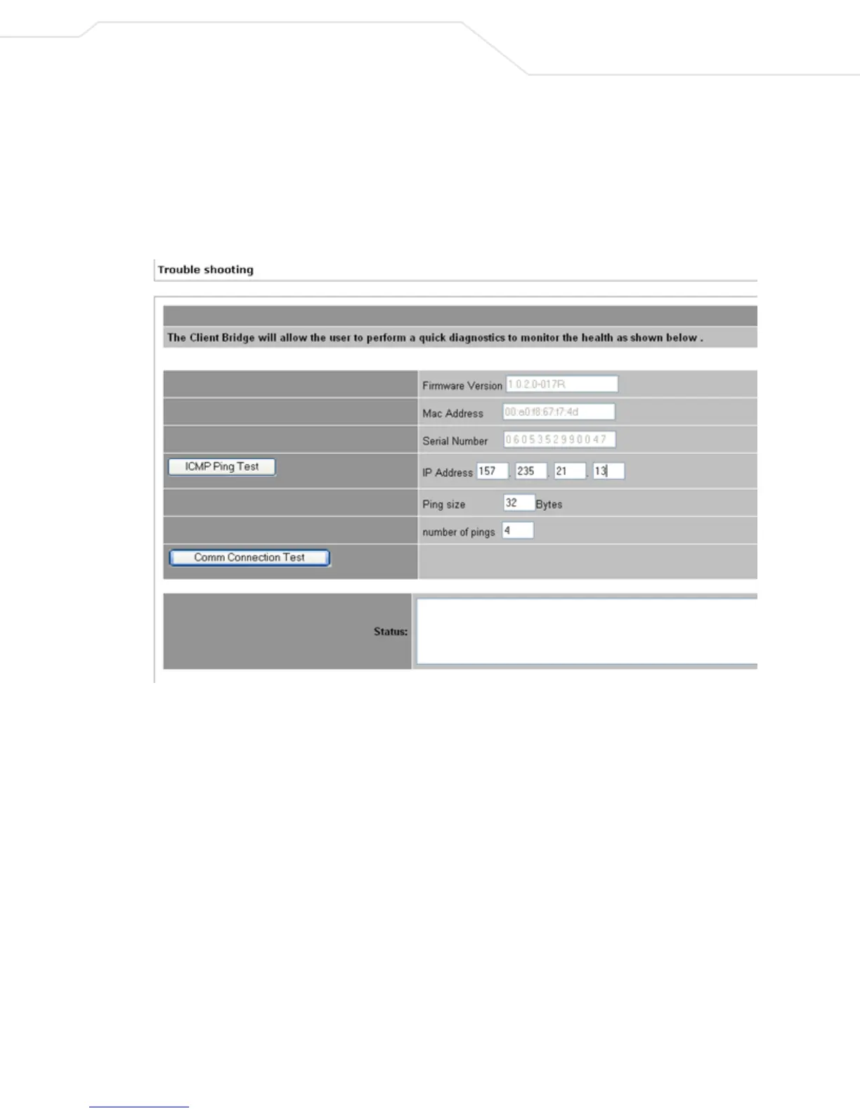 • Ping an Associated Device – The CB3000 can verify its link with an associated access point or networked