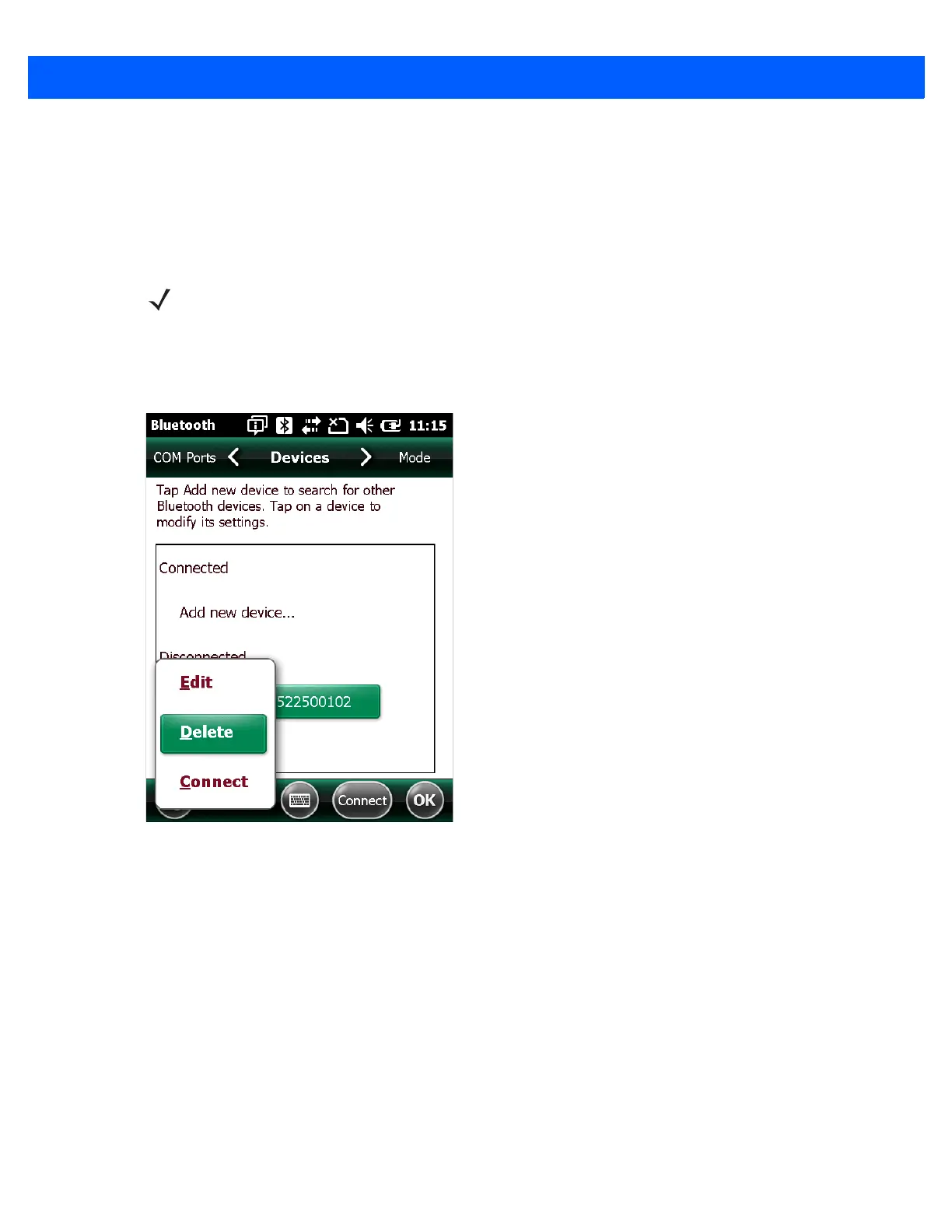 To delete the device from the discovered devices list, tap and old the device and select Delete.