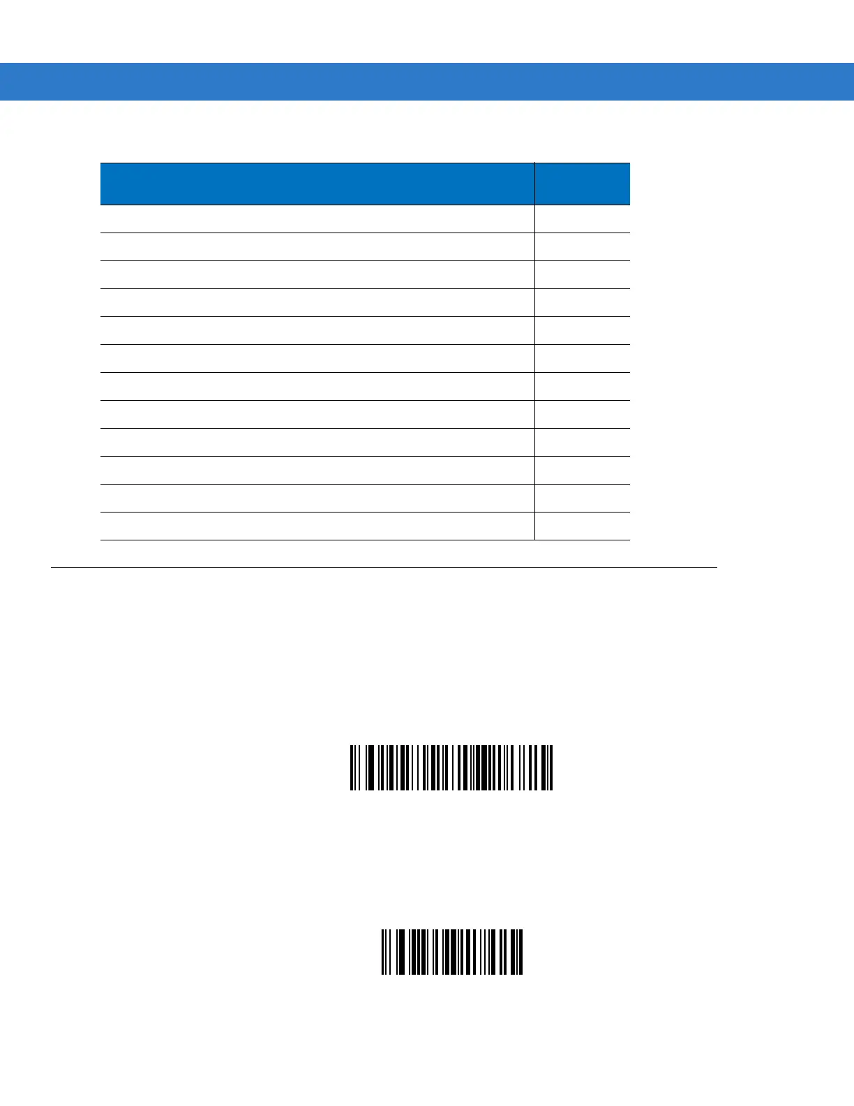 0.1 second in the range of 0.1 to 9.9. For example, scanning bar codes 0 and 1 inserts a 0.1 second pause; 0 and