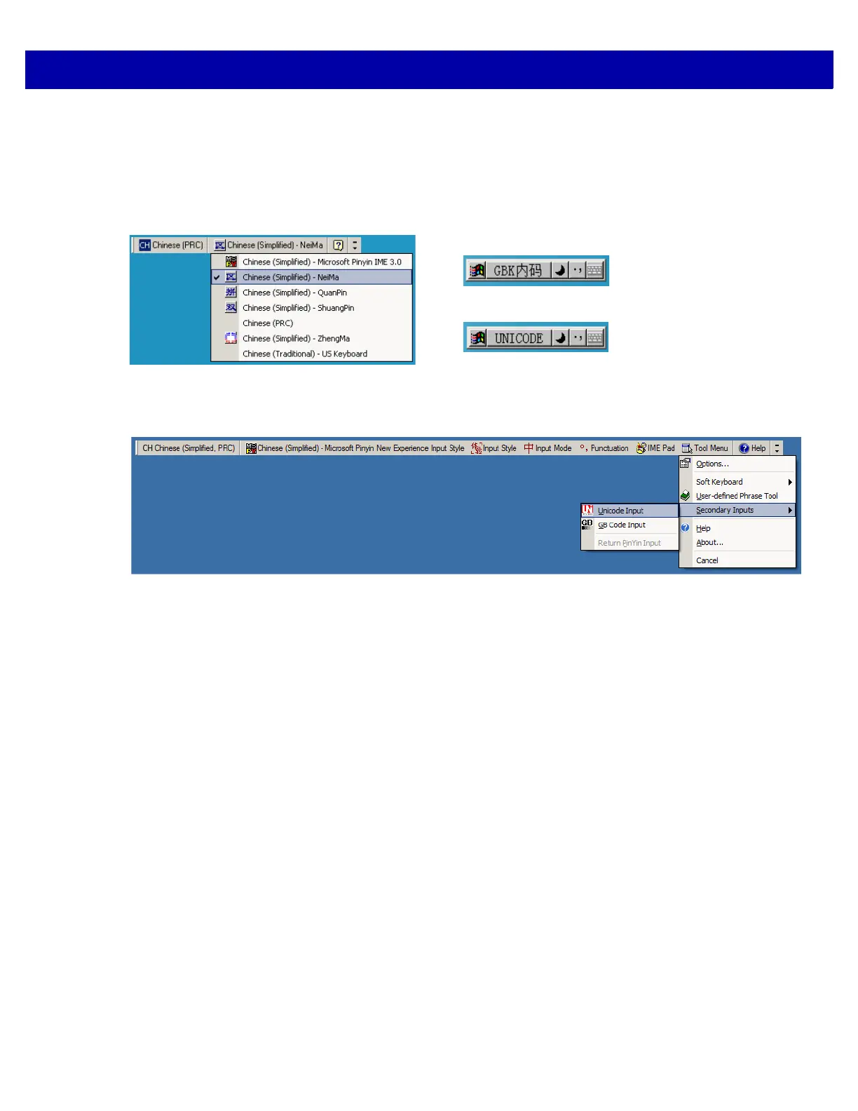 Style, then select Tool Menu > Secondary Inputs > Unicode Input or GB Code Input.