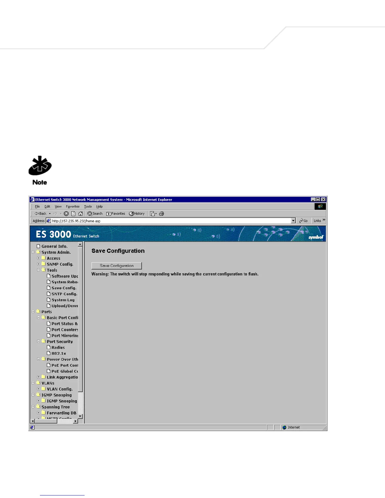 Configuration page as the central location to save changes made within the ES3000 Ethernet Switch