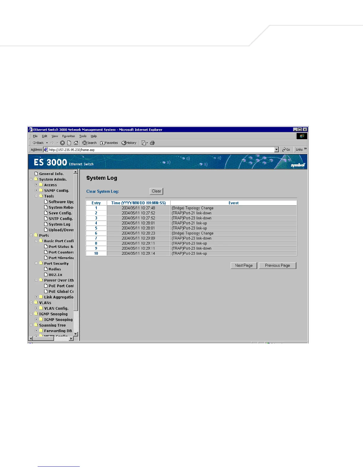 Symbol ES3000 - System Admin->Tools->System Log Menu