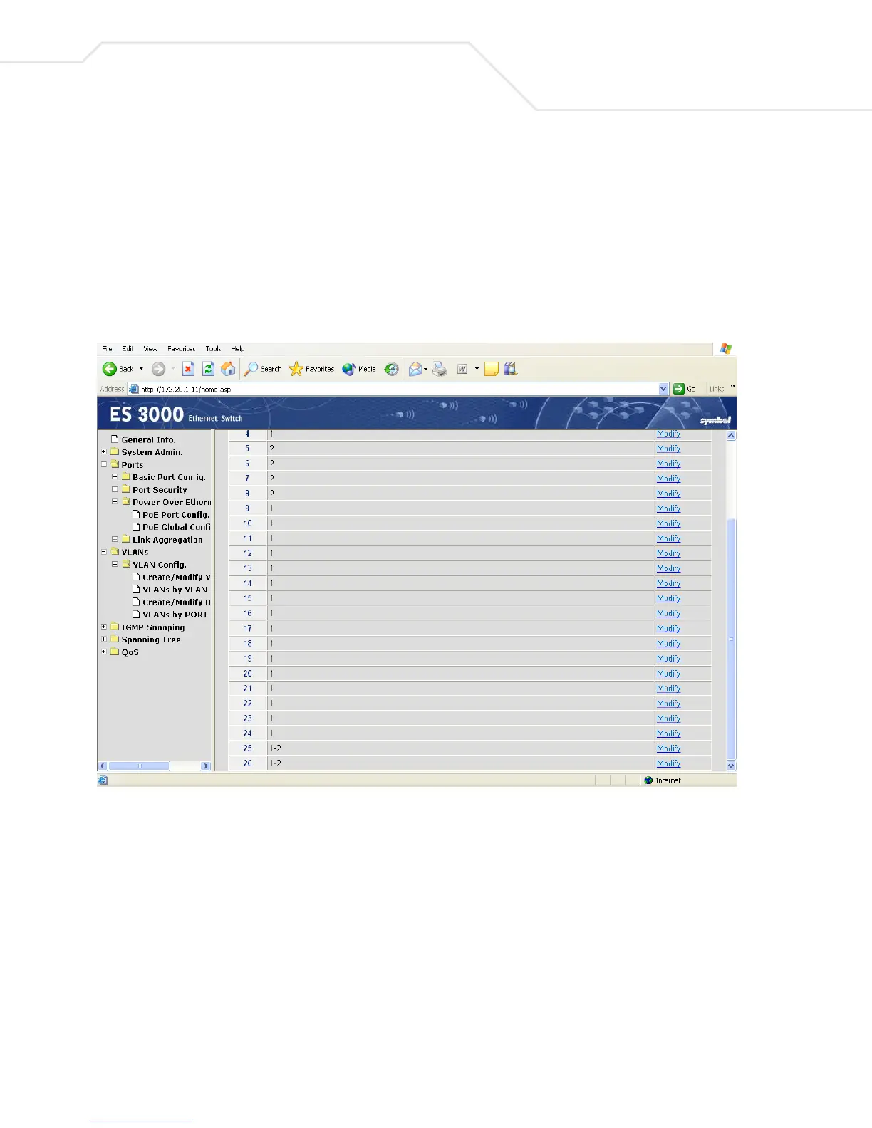 1. Select Modify to configure VLAN information for the target port.