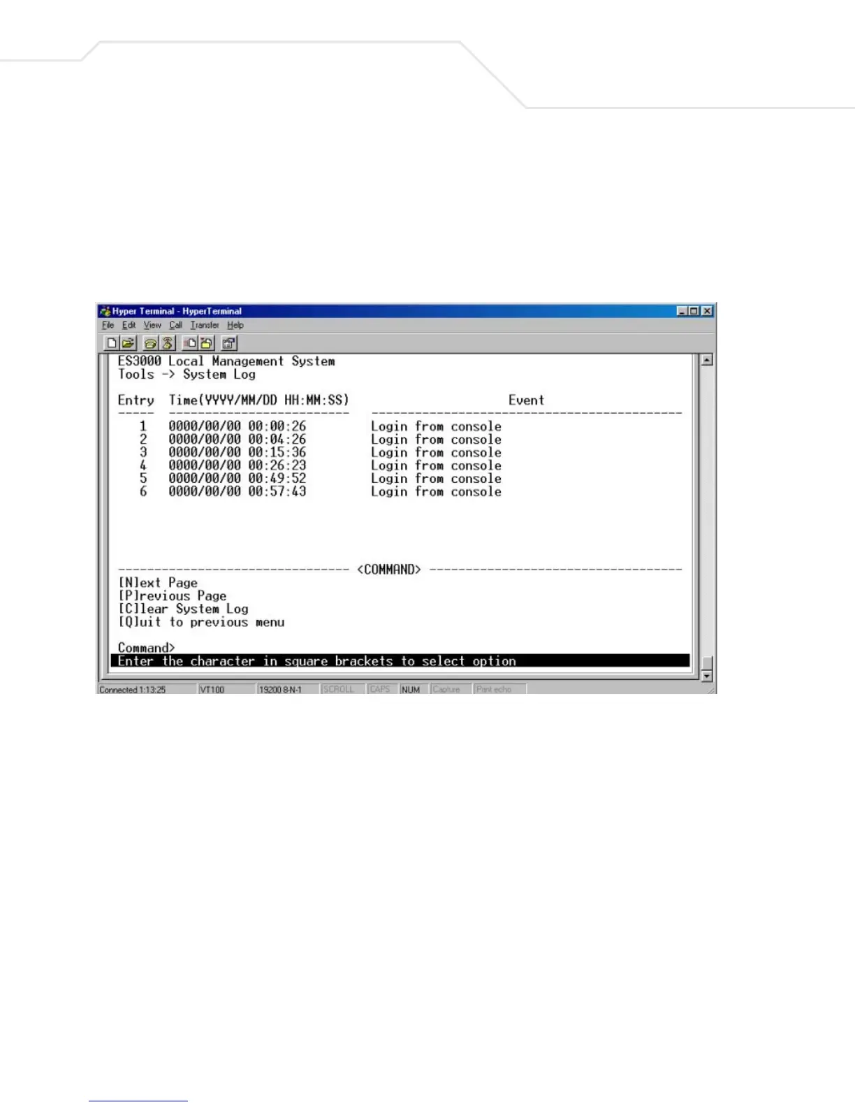 Symbol ES3000 - Main Menu->System Admin.->Tools->System Log