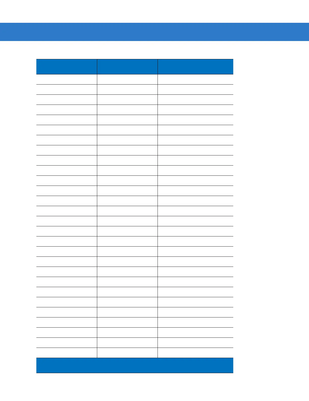 ASCII Value Standard Default Parameters Table (Continued)