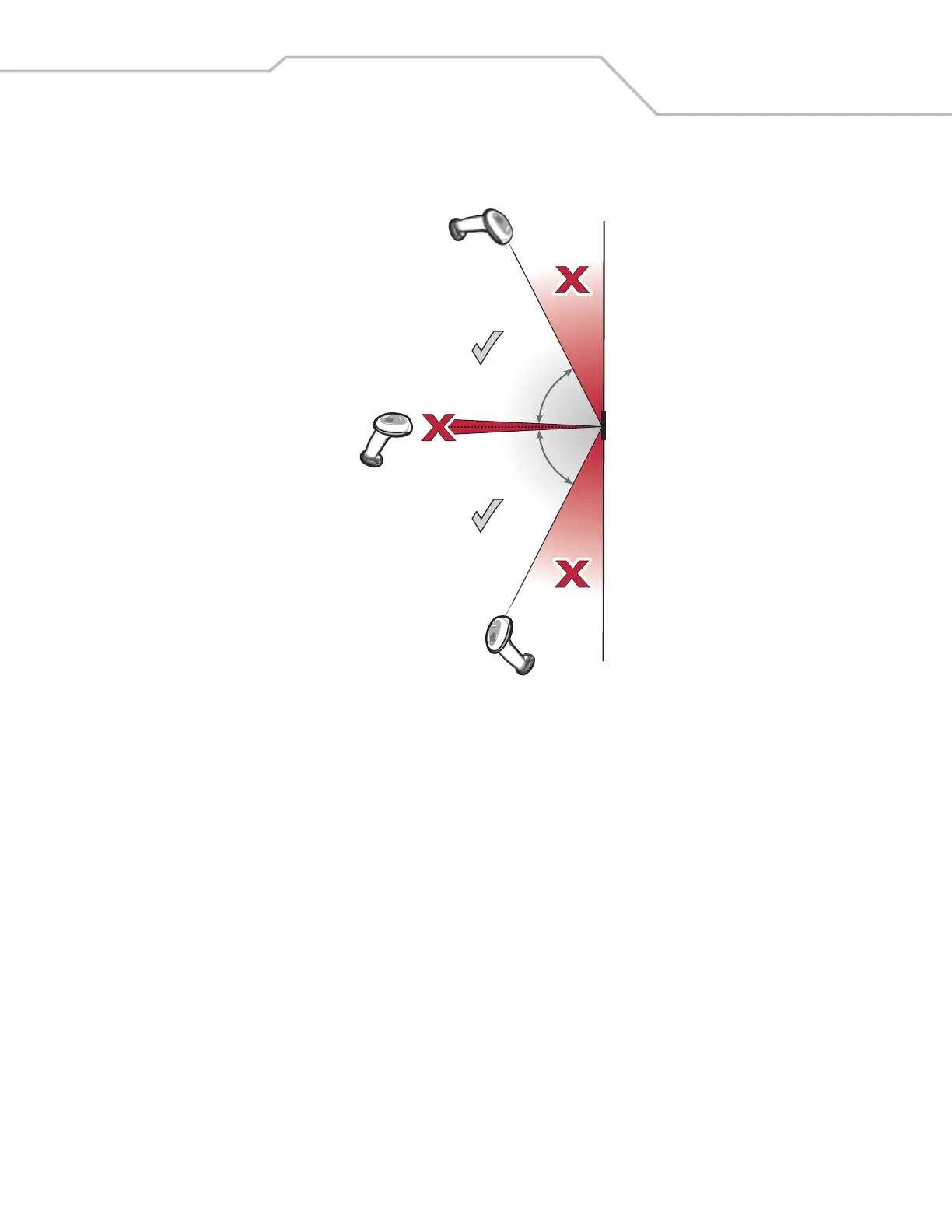 The scanner can be tilted up to 65° forward or back and achieve a successful decode (Figure 2-4). Simple practice quickly shows what