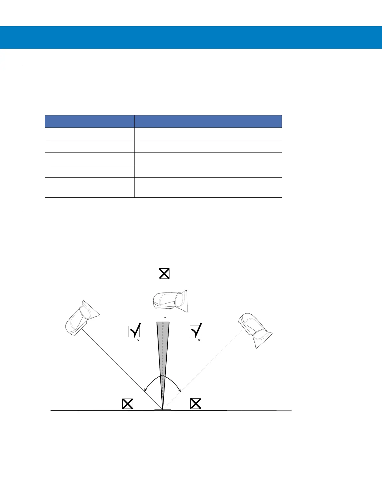 The scanner can be tilted up to 45° forward or back and achieve a successful decode (Figure 2-6). Simple practice