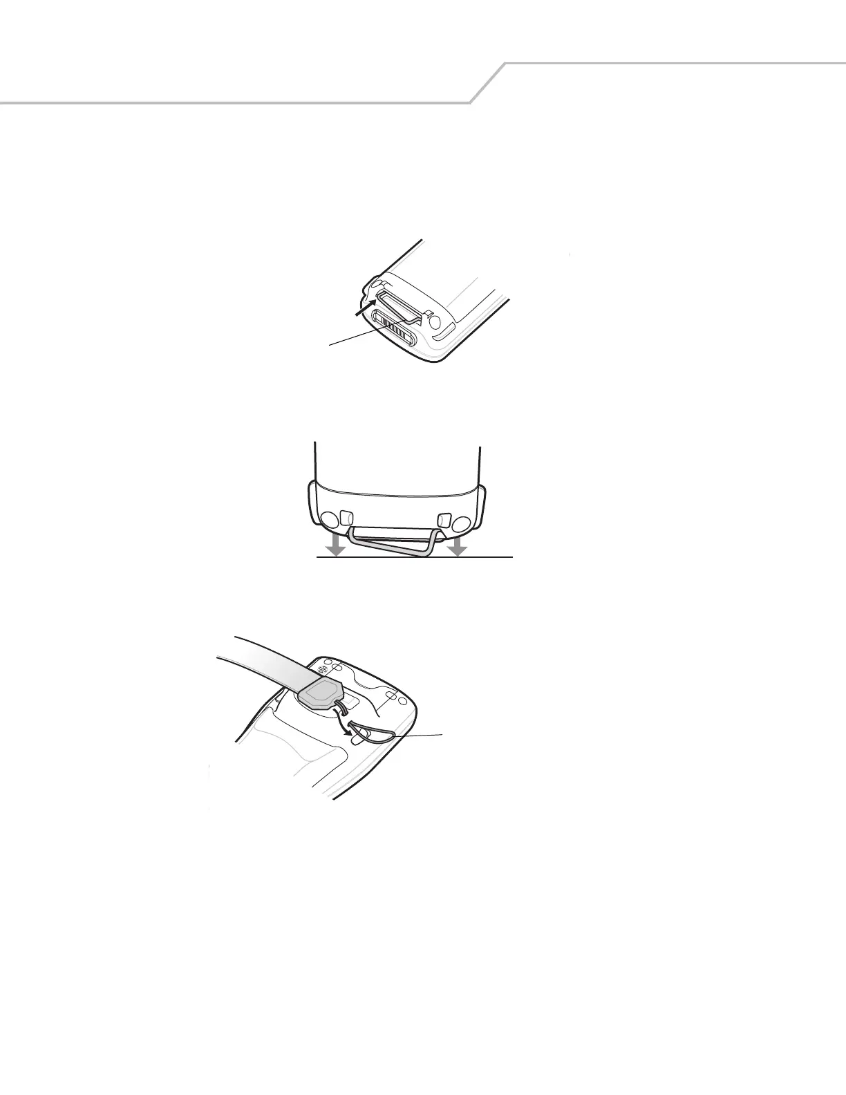 1. Insert the handstrap clip into the slot at the bottom of the mobile computer.