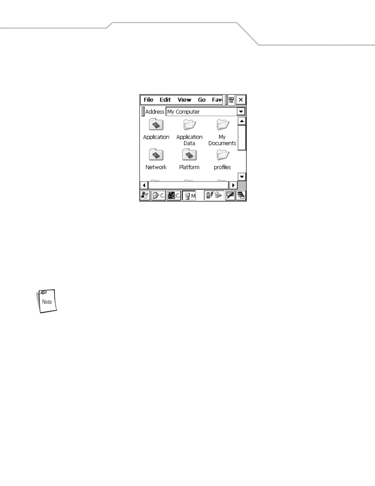 The mobile computer directory structure displays all of the file folders, see Figure 2-10. The pre-installed folders are in flash file