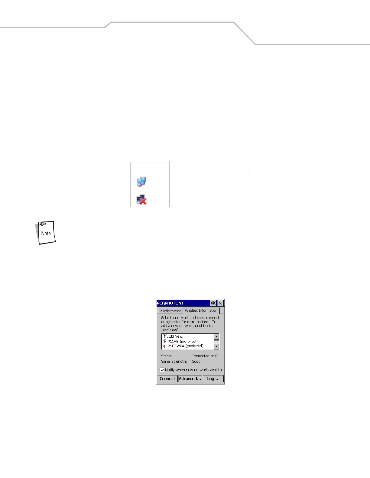 The connection status and the WLAN availability are displayed using icons on the Wireless Information tab. The icons associated