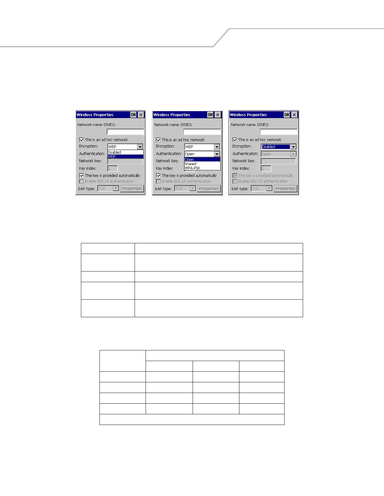 Figure 7-6. Wireless Properties, Ad Hoc Network Encryption Selection