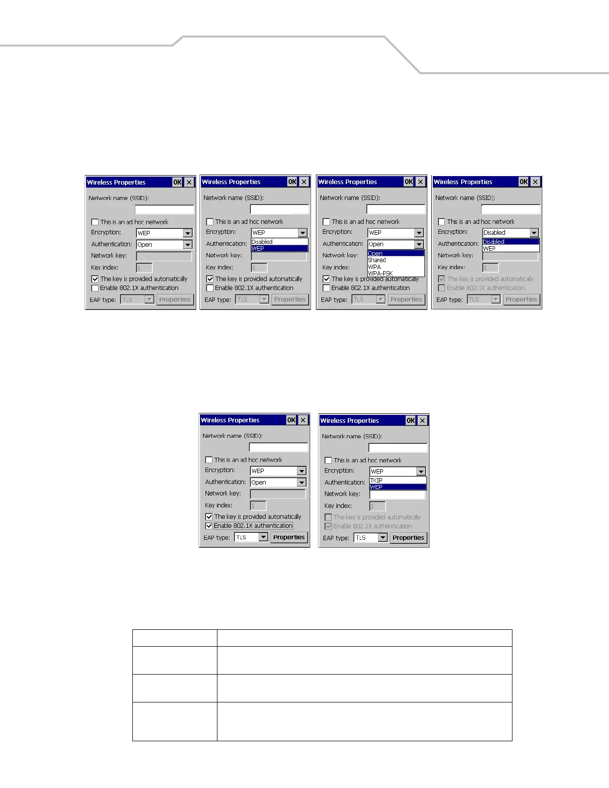 authentication types. If the Disabled encryption setting is selected, there are no authentication types available. See Table