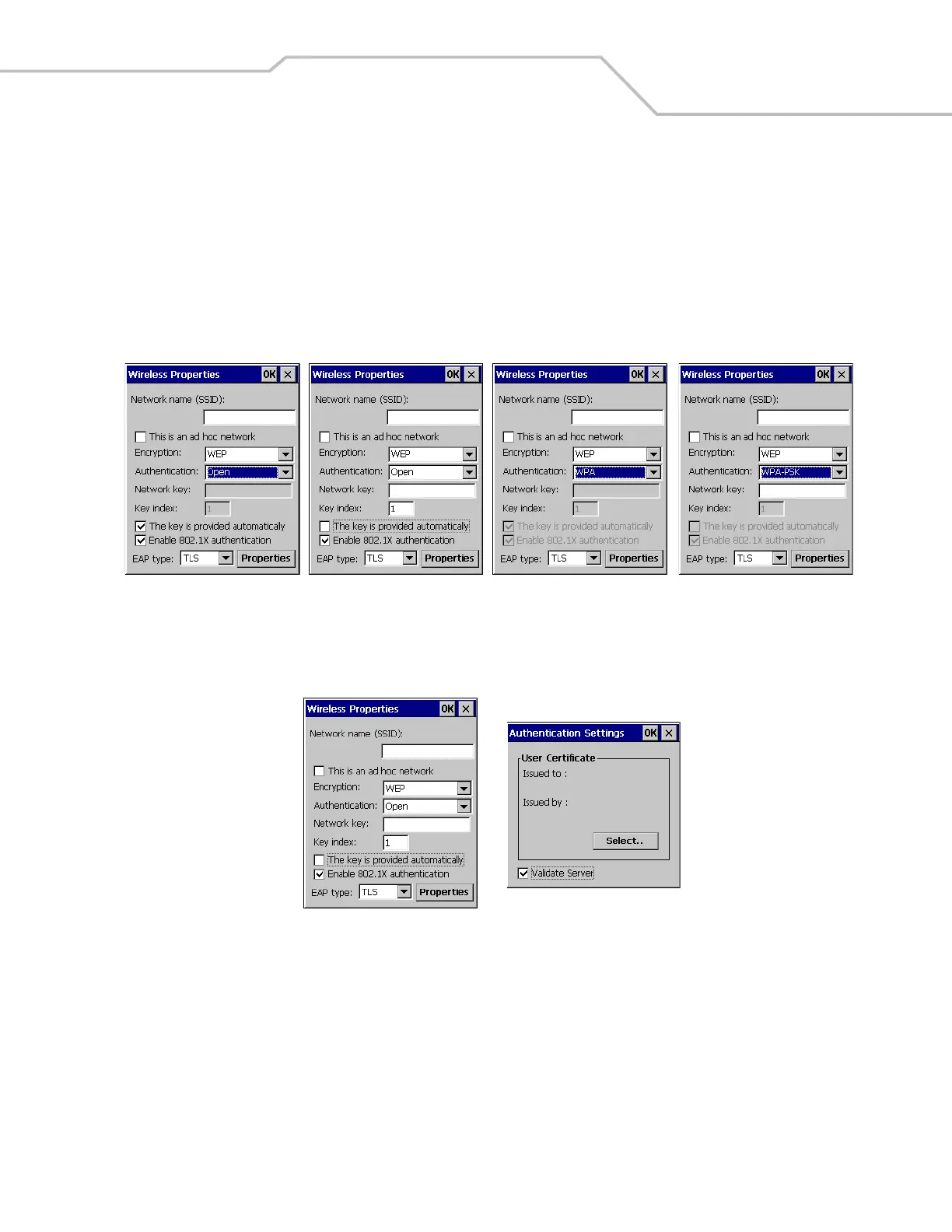 12. Tap the Properties button on the Wireless Properties window to view the User Certificate window.