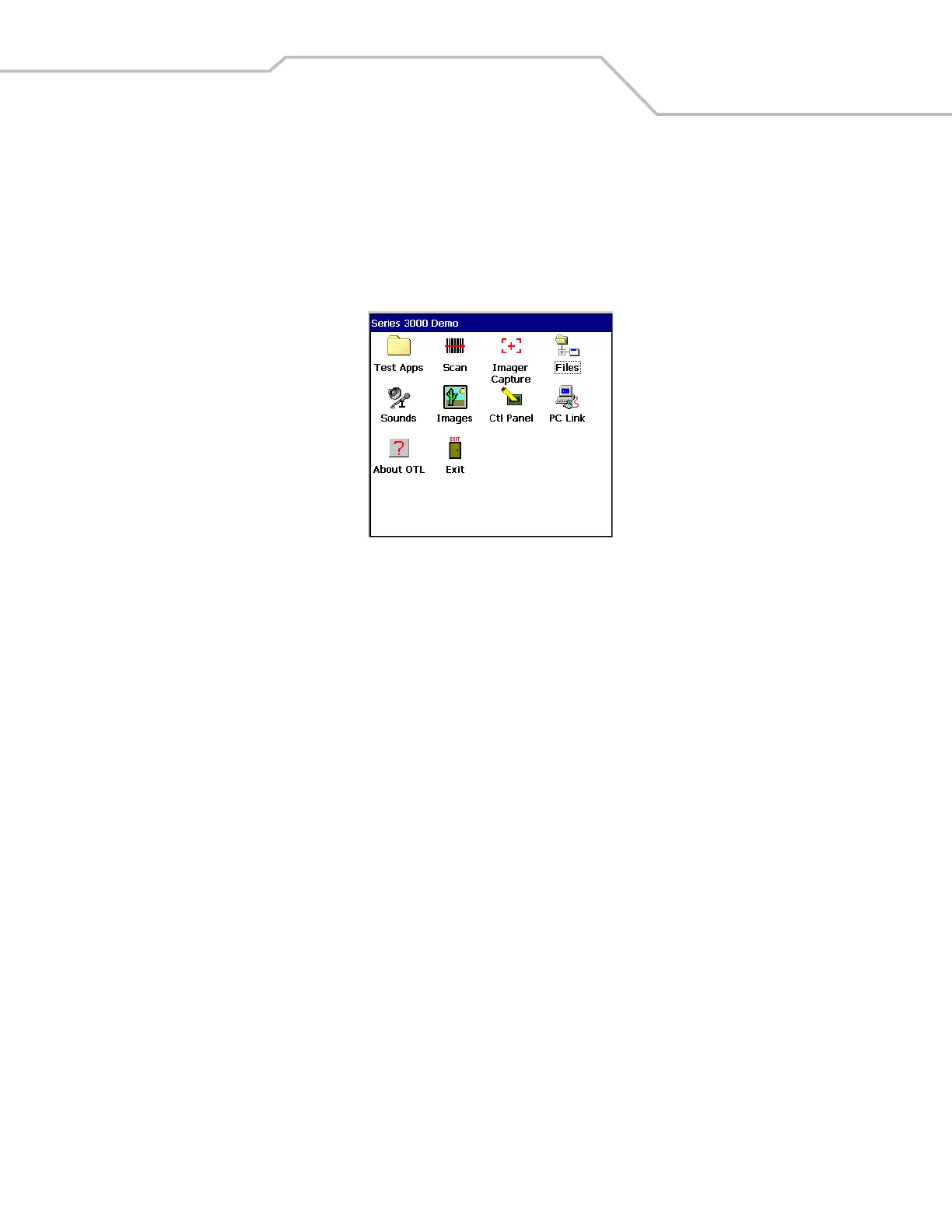 The Series 3000 Demo window is the factory default menu. On initial power up (or on a warm or cold boot) the Series 3000 Demo