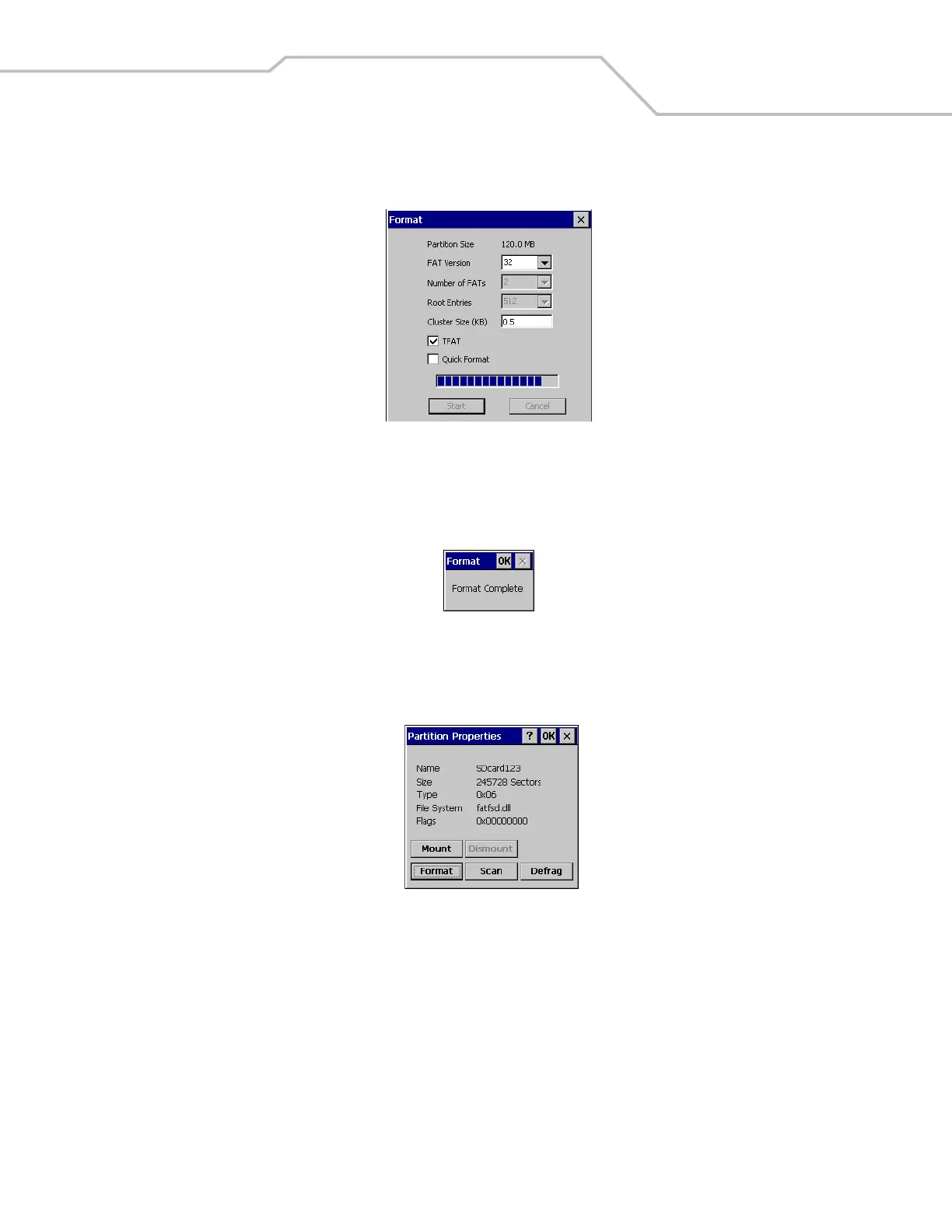 14. The Format in progress window completion bar indicates the status of the format. When the format is complete the Format