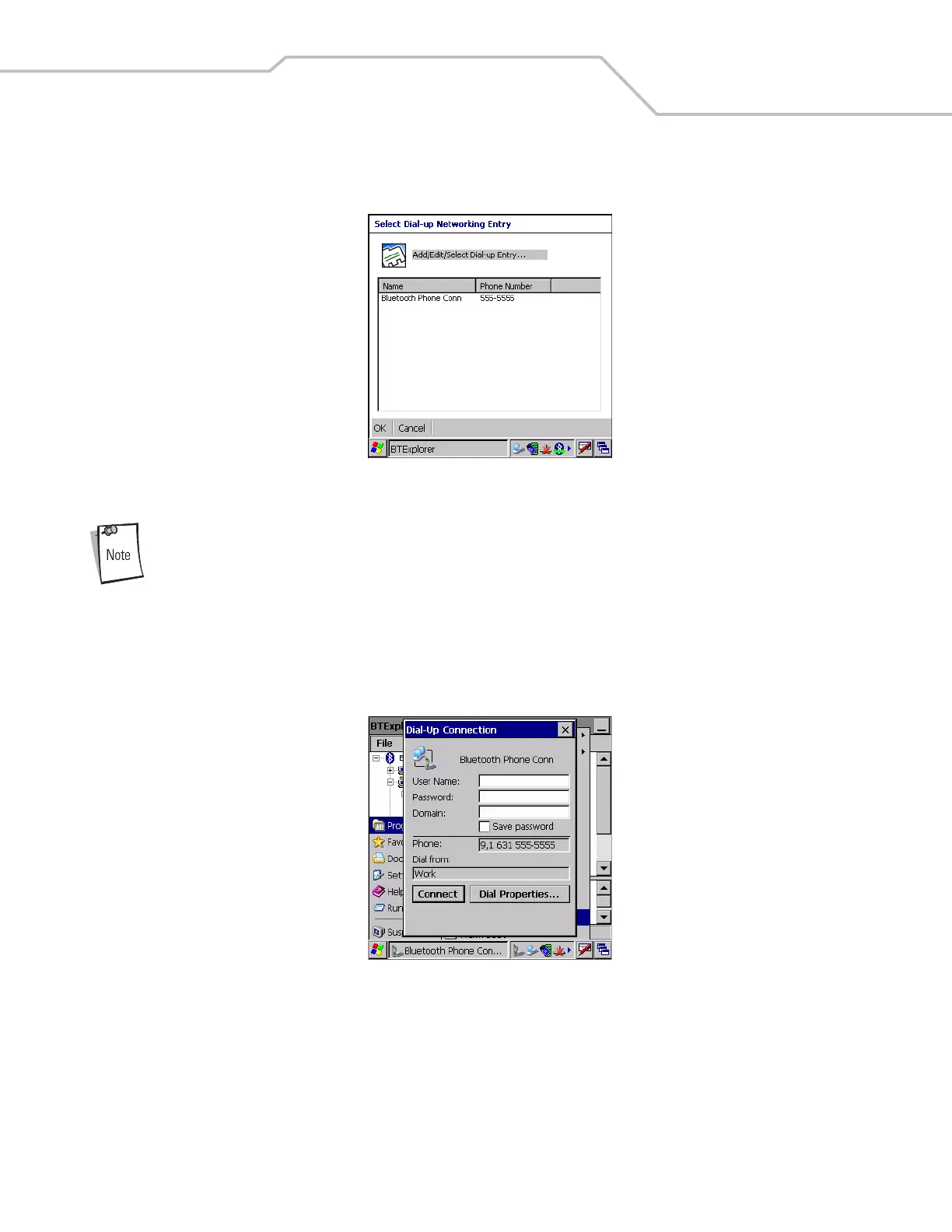8. Tap OK. The mobile computer begins to communicate with the phone. If required, the phone requests permission to