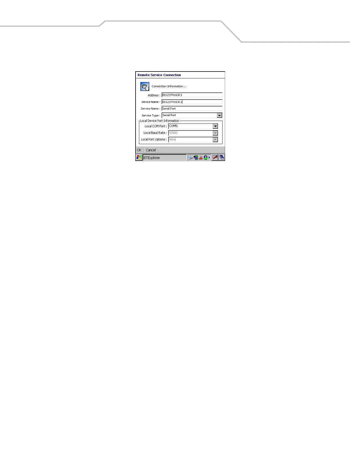 6. Tap and hold Serial Port and select Connect in the pop-up menu. The Remote Service Connection window appears.