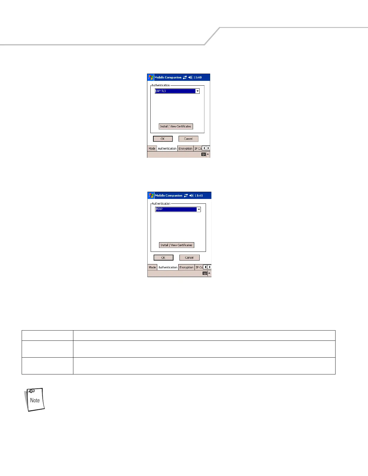 Figure 8-6. Mobile Companion - Authentication Tab (EAP-TLS)