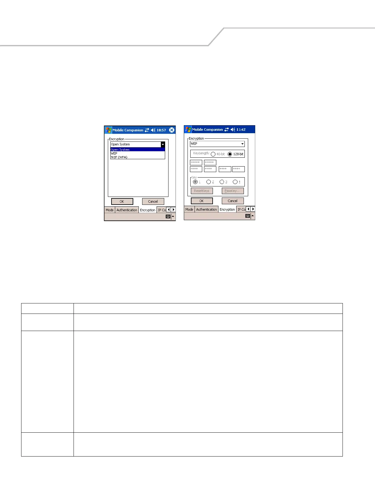 Open System Use the Open System option when no data packet encryption is needed over the network. Selecting this option provides no security for