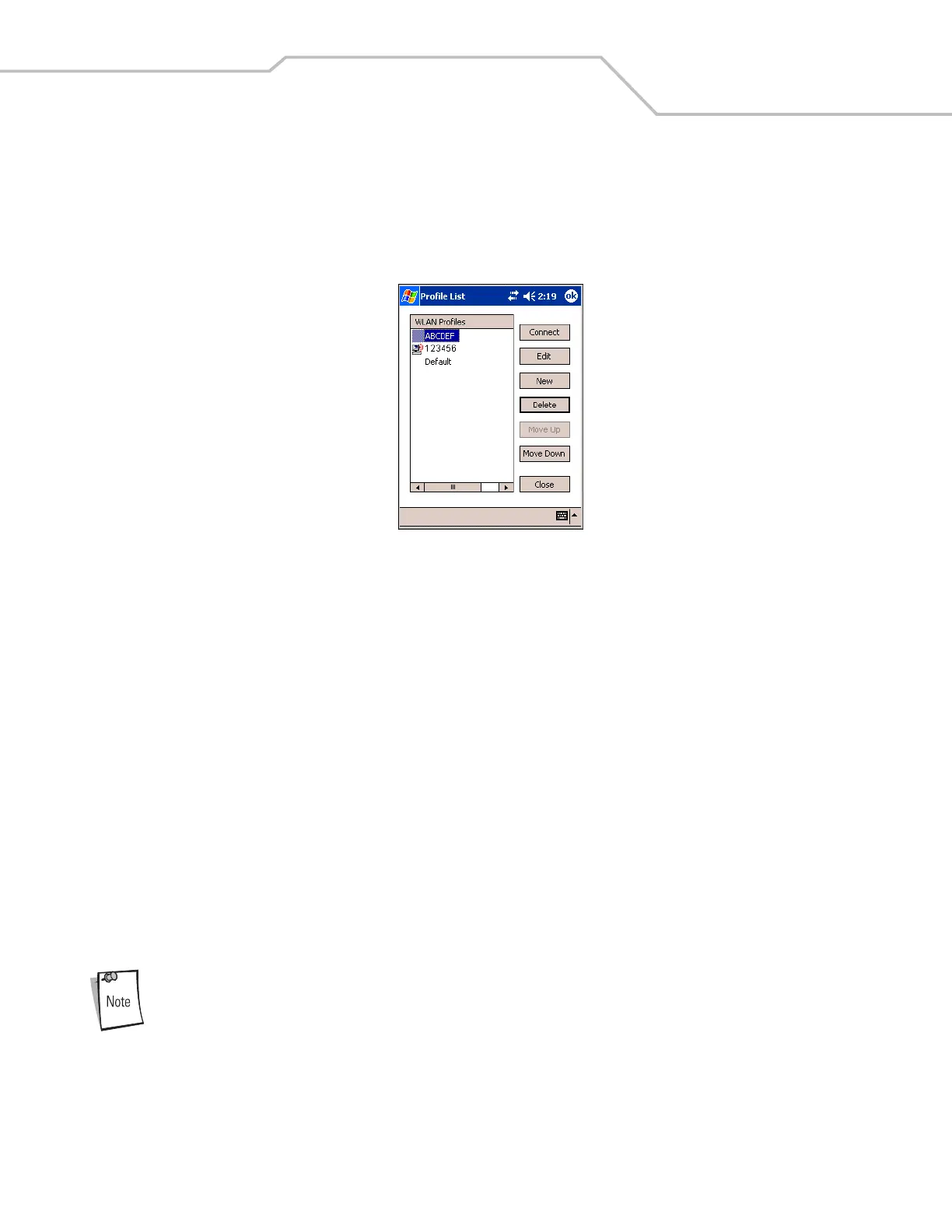 Select a profile from the list box and tap Connect to set that profile as the active profile. The mobile computer uses the