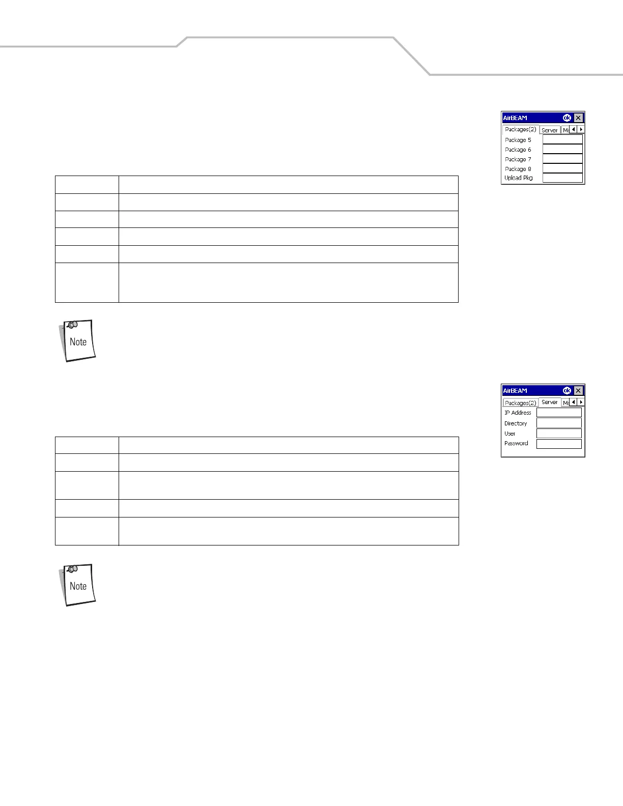Upload Pkg Package name of a package that is to be processed for “upload files” during the AirBEAM