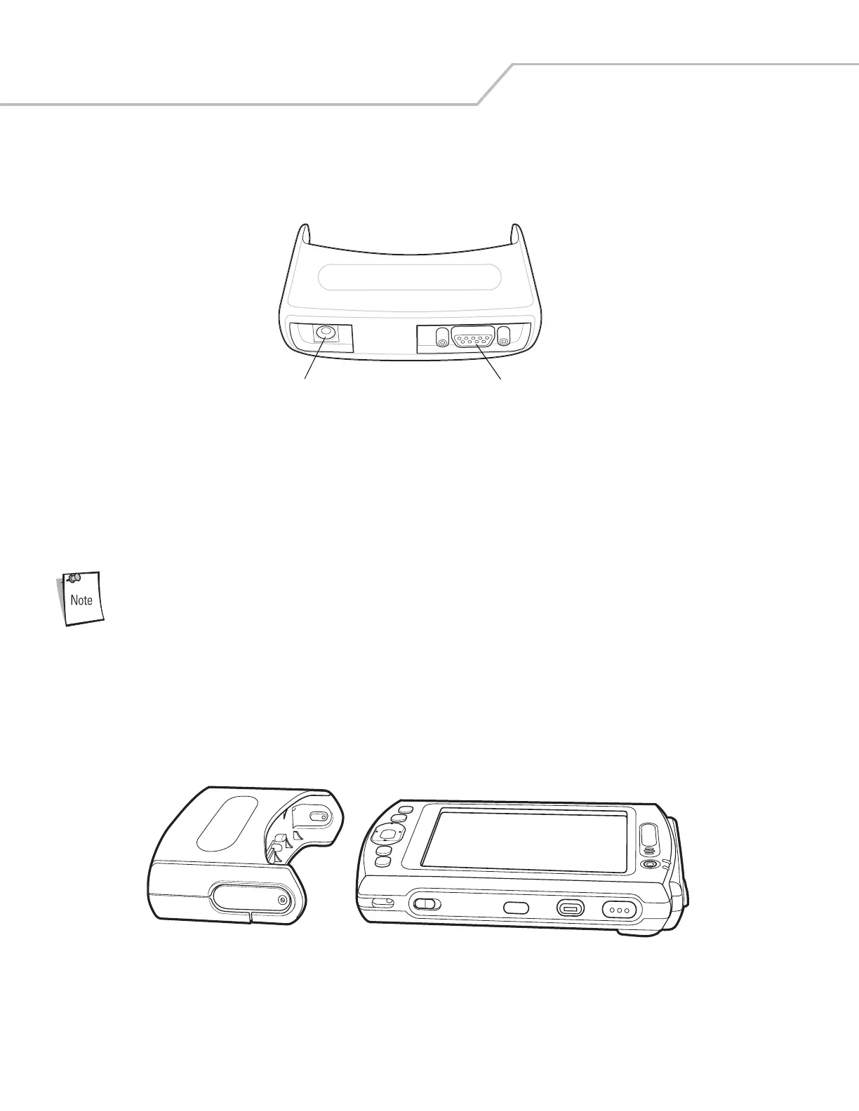 • Charges the mobile computer’s battery, when used with the appropriate power supply.
