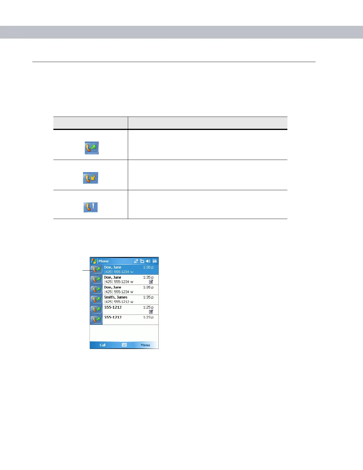 access to notes taken during a call. Table 4-1 lists the call history icons that appear in the Call History window.