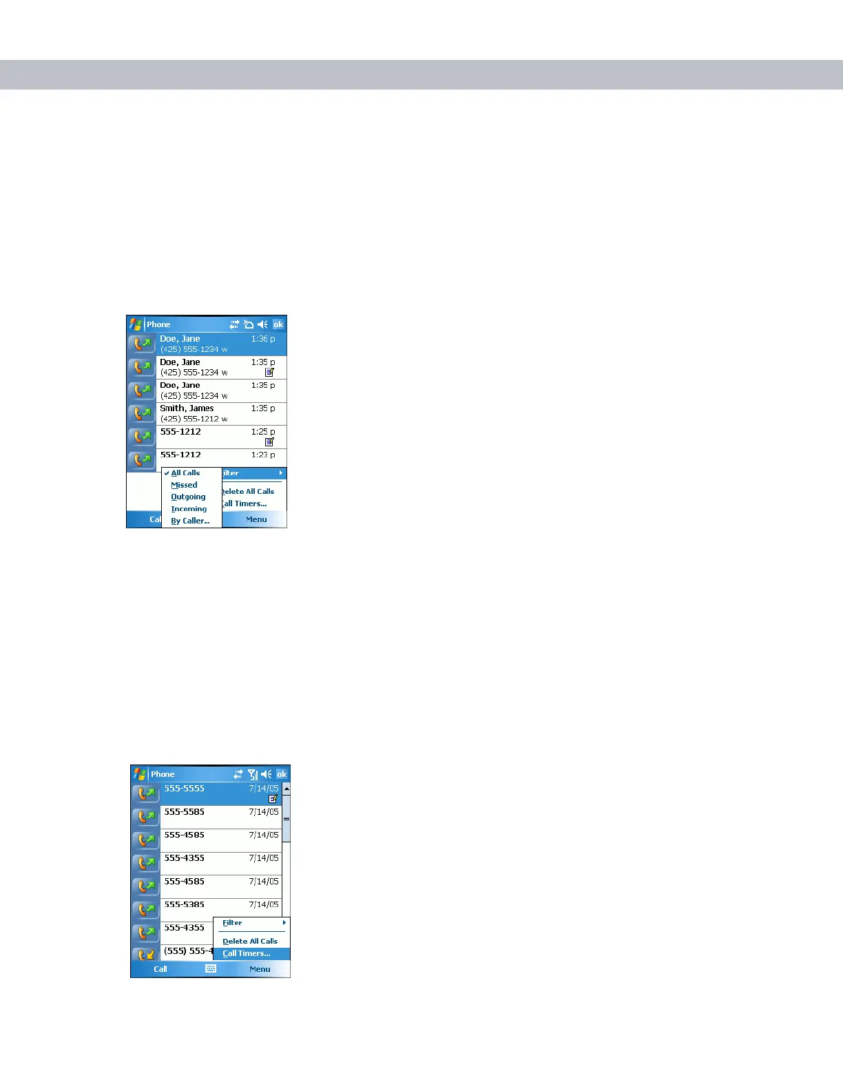4. Select a view type from the menu to display only missed calls, outgoing calls, incoming calls, or calls listed