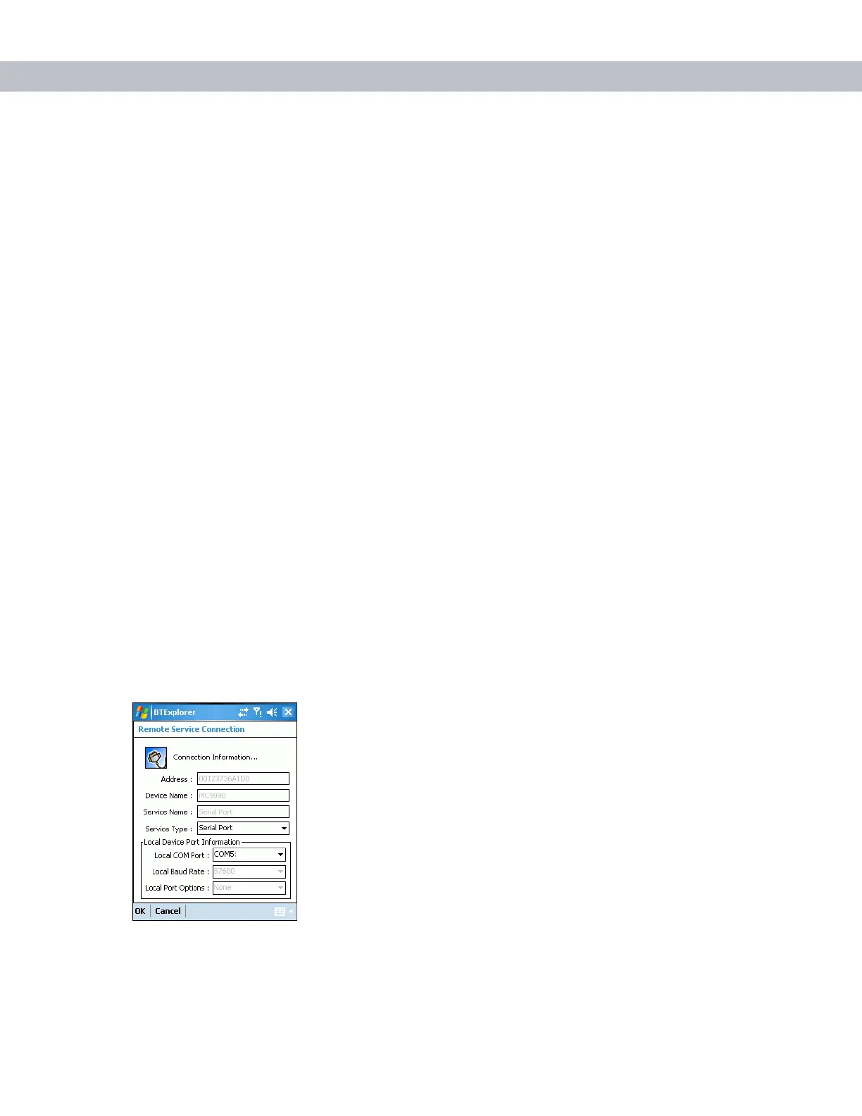 6. Tap and hold Serial Port and select Connect in the pop-up menu. The Remote Service Connection window