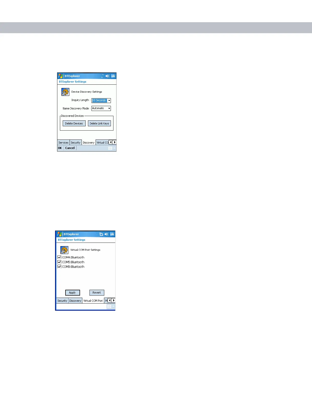 BTExplorer Settings - Virtual COM Port Tab