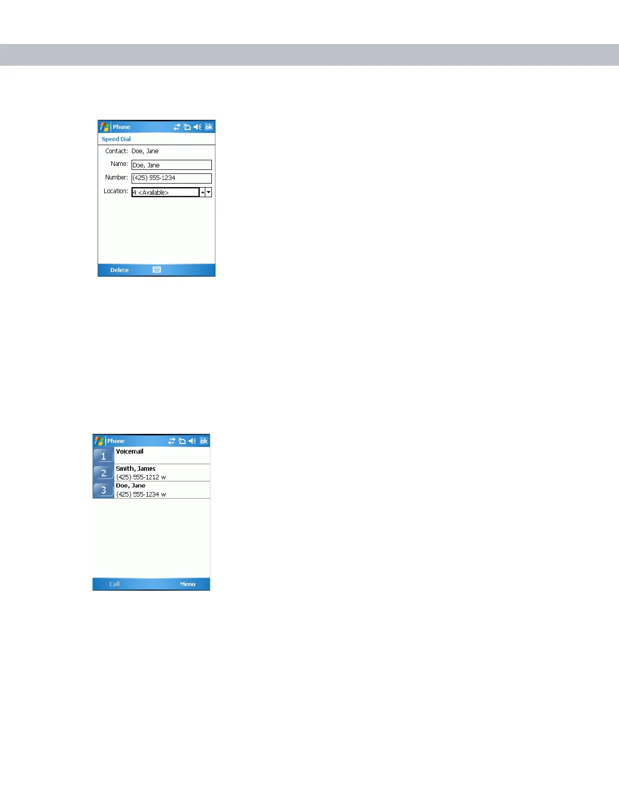 Speed Dial Contact Location
