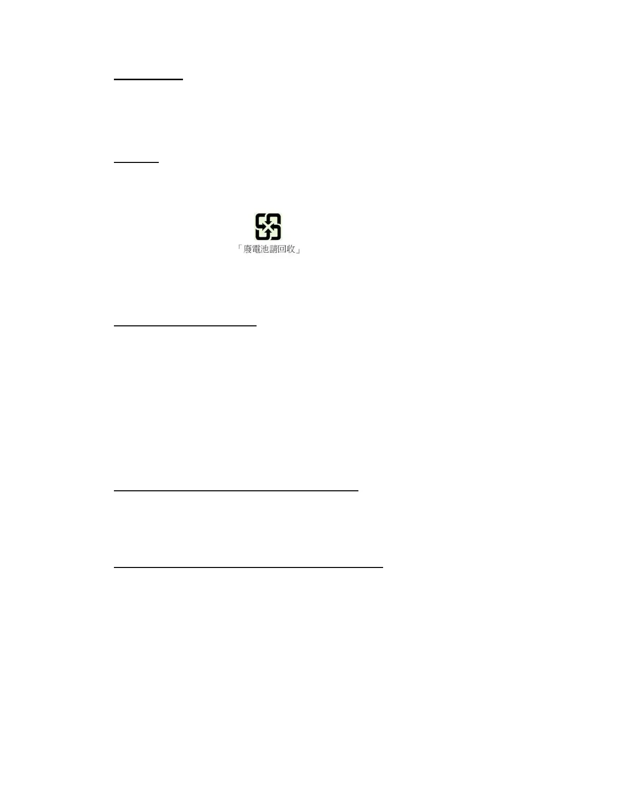 sales, giveaway or promotion. Contact a qualified Taiwanese recycler for proper battery disposal.