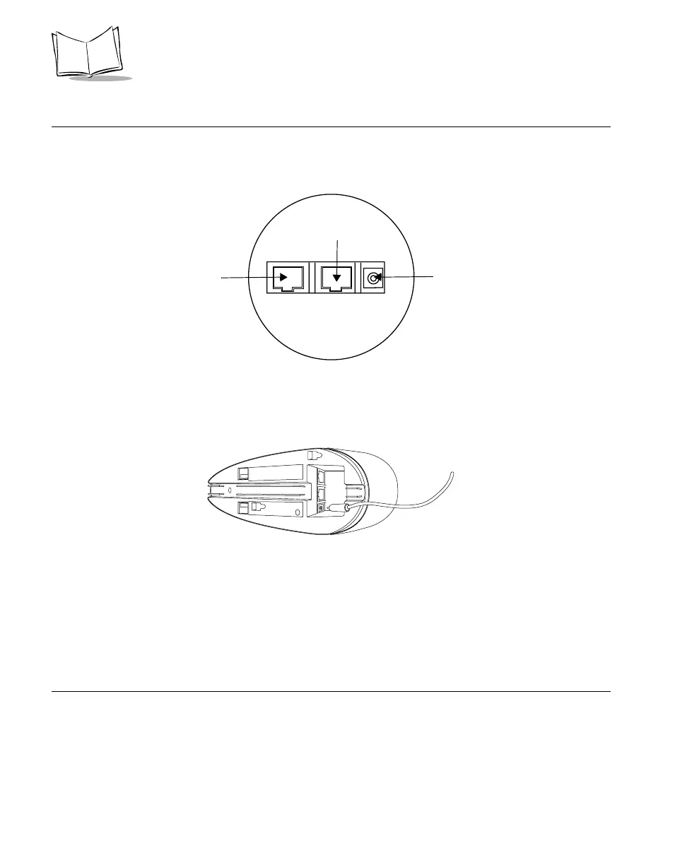 On the bottom of the cradle are three ports. COM1 connects to the host computer, COM2