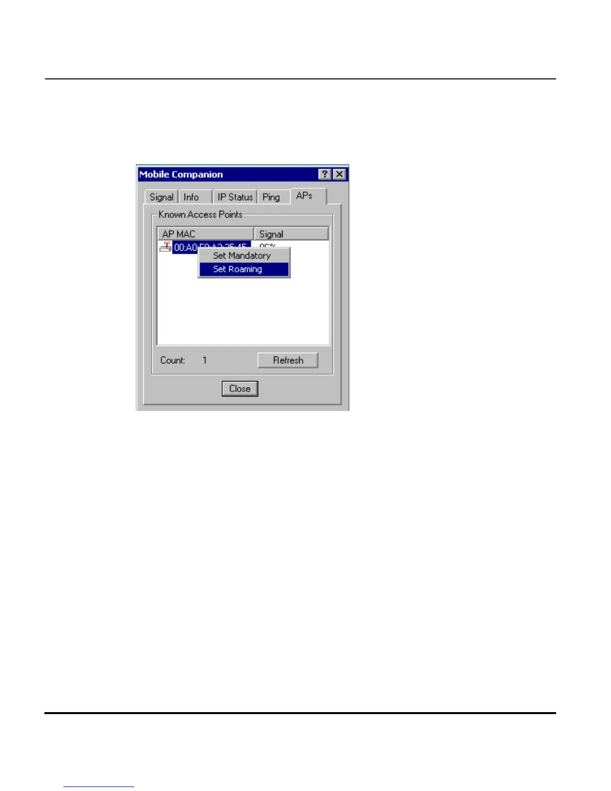 the Set Mandatory option has been selected. Selecting Set Roaming allows