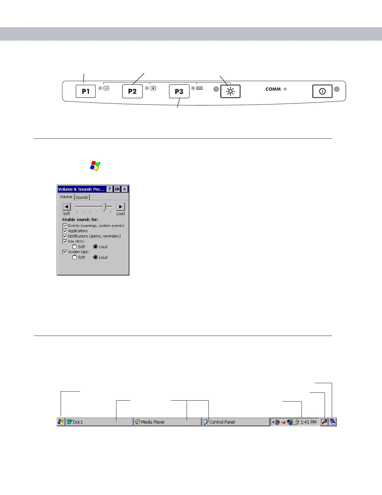 1. Tap the > Settings > Control Panel > Volume & Sounds icon. The Volume & Sounds Properties window