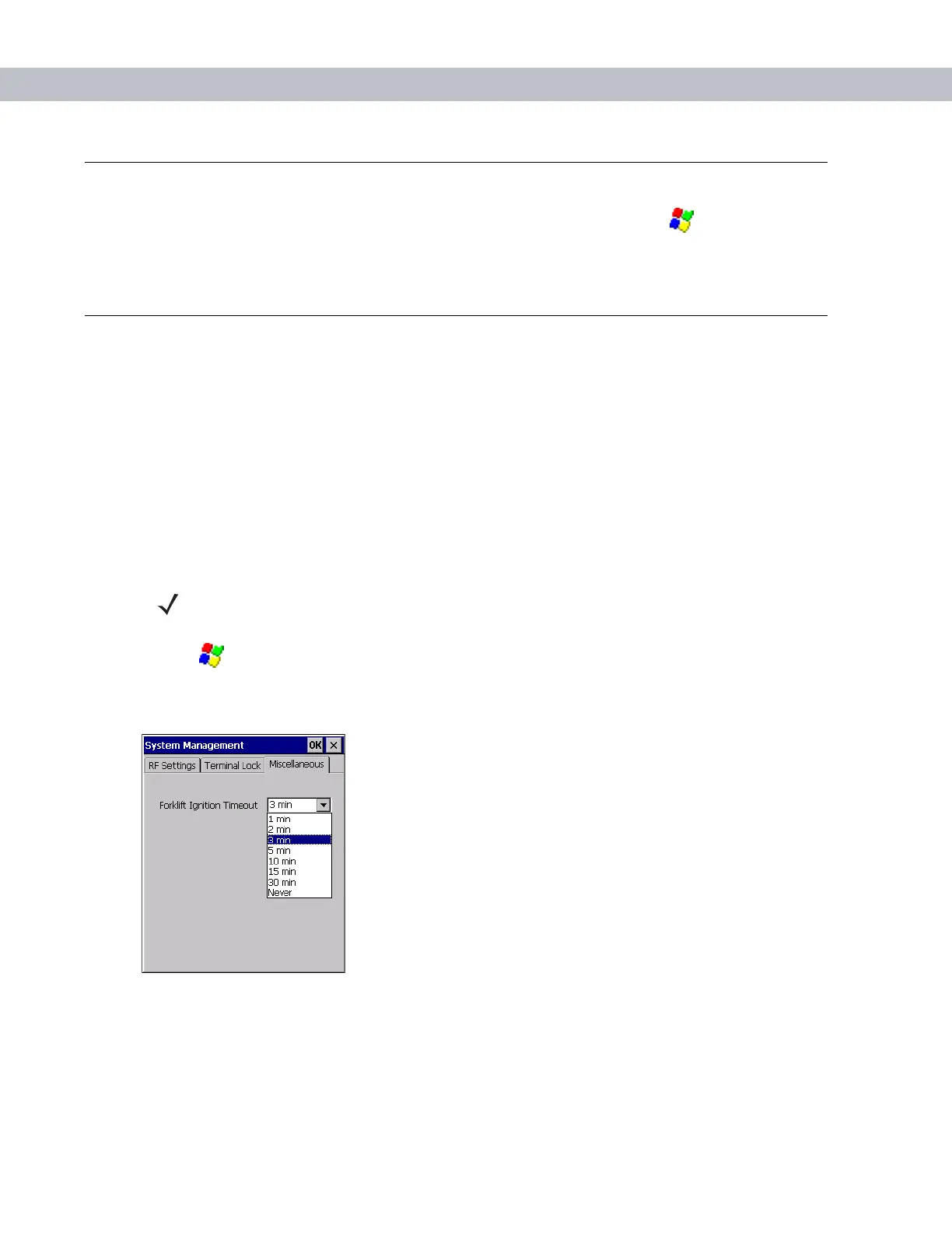3. In the Forklift Ignition Timeout drop-down list, select the amount of time before the vehicle computer shuts