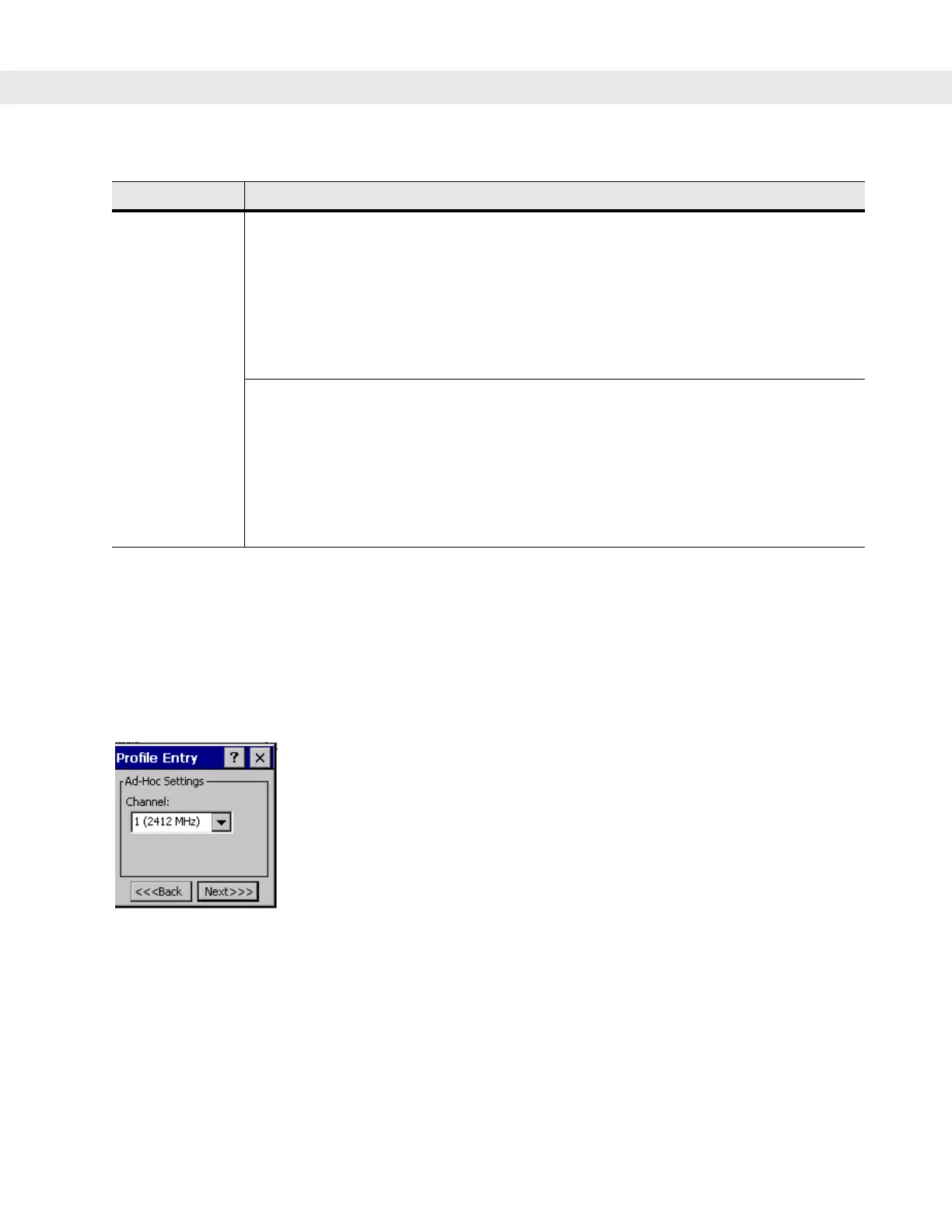 Tap Next. If Ad-Hoc mode was selected the Ad-Hoc dialog box displays. If Infrastructure mode was selected the