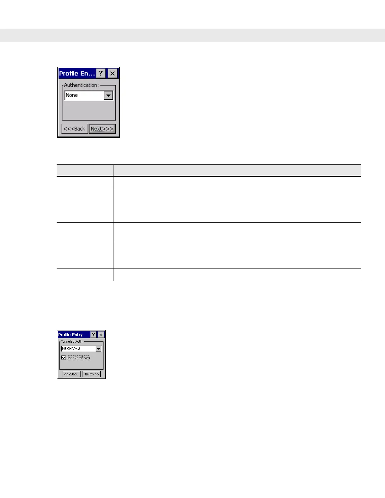 Use the Tunneled Authentication dialog box to select the tunneled authentication options. There are different