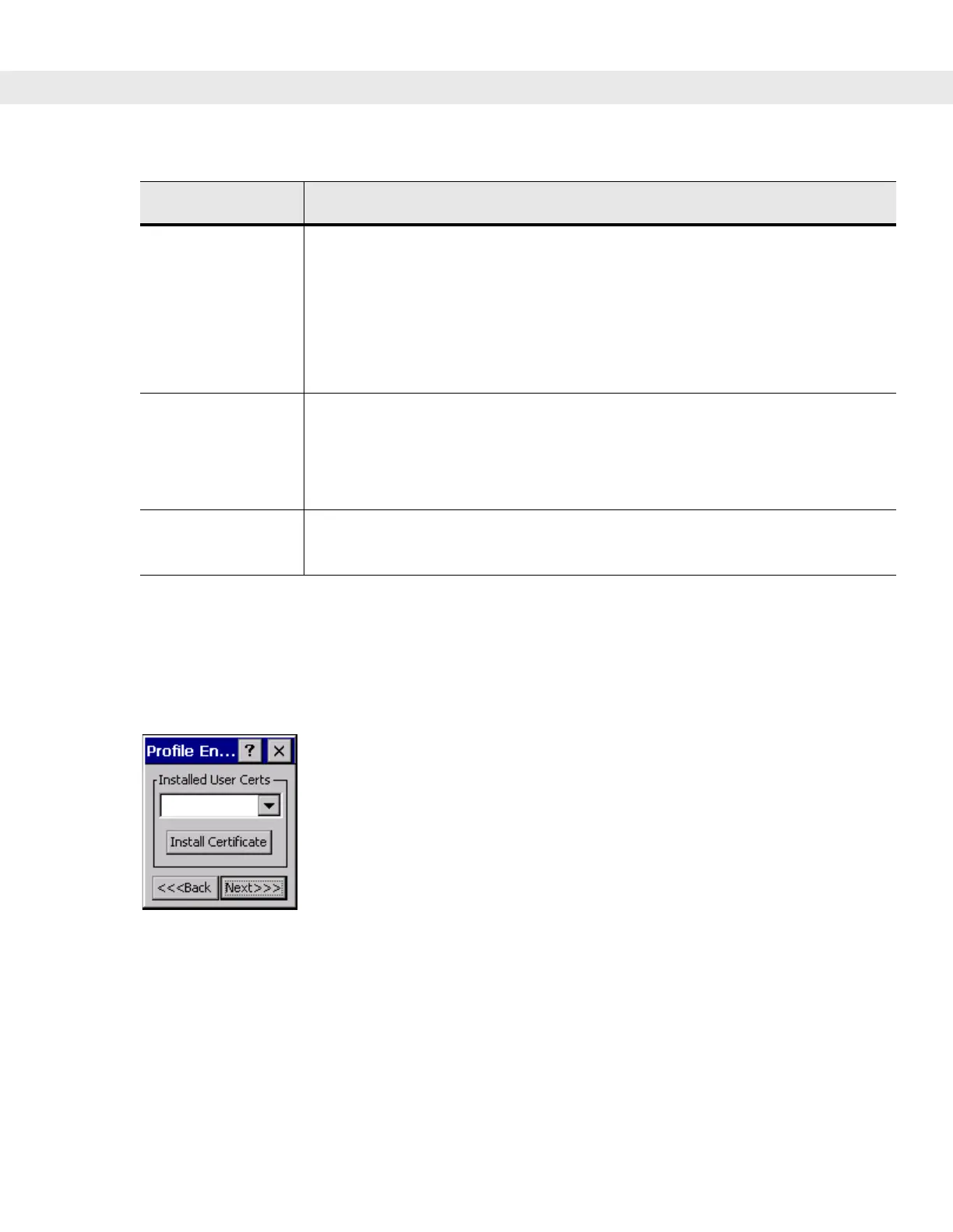 Installed User Certificates Dialog Box