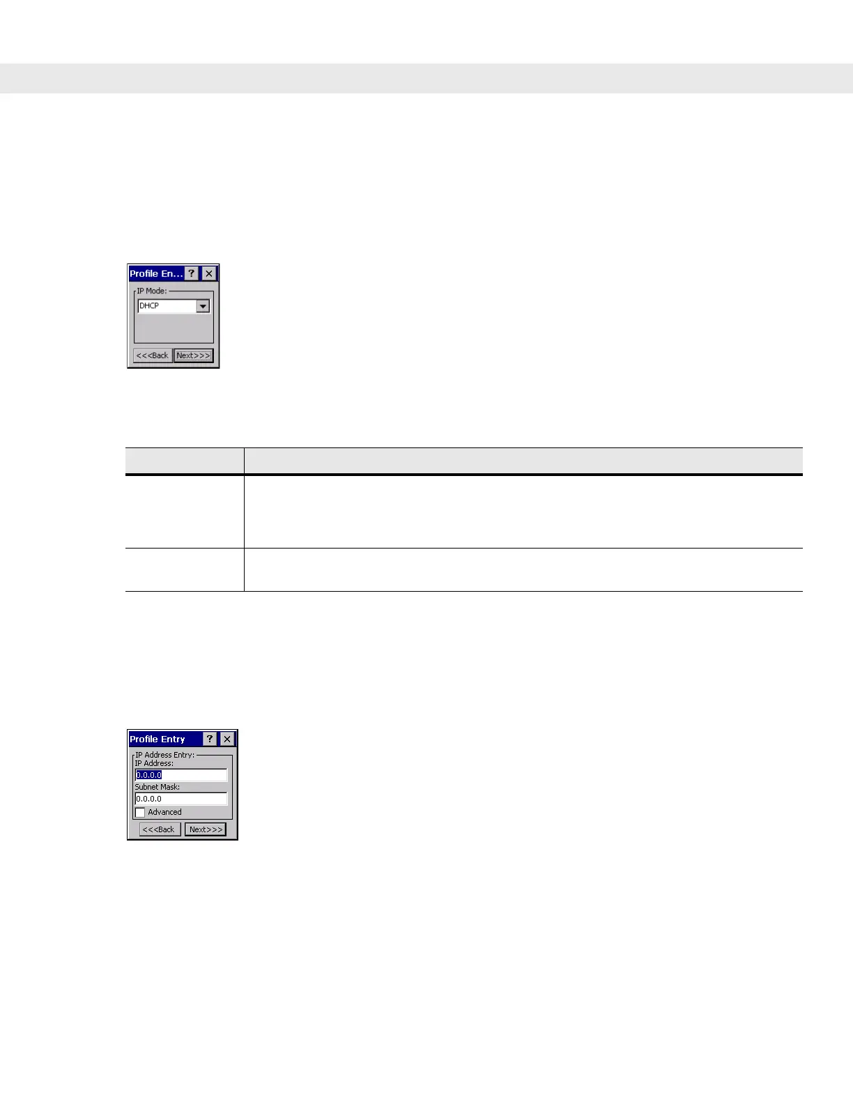 Tap Next. The IP Mode dialog box displays.