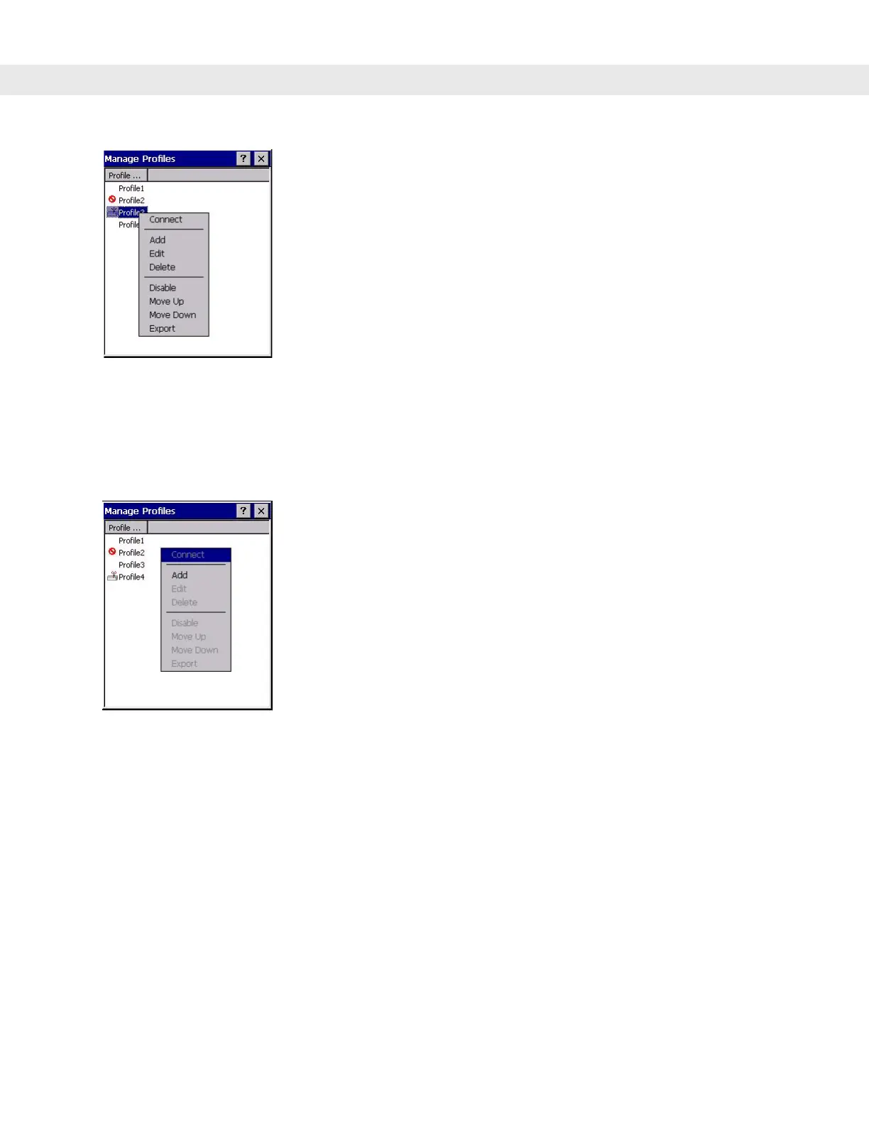 To create new profiles from the Manage Profiles window, tap-and-hold anywhere in this window.