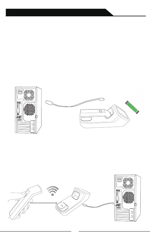2.Handheld mode :Hold the barcode scanner, and connect the pedestals with