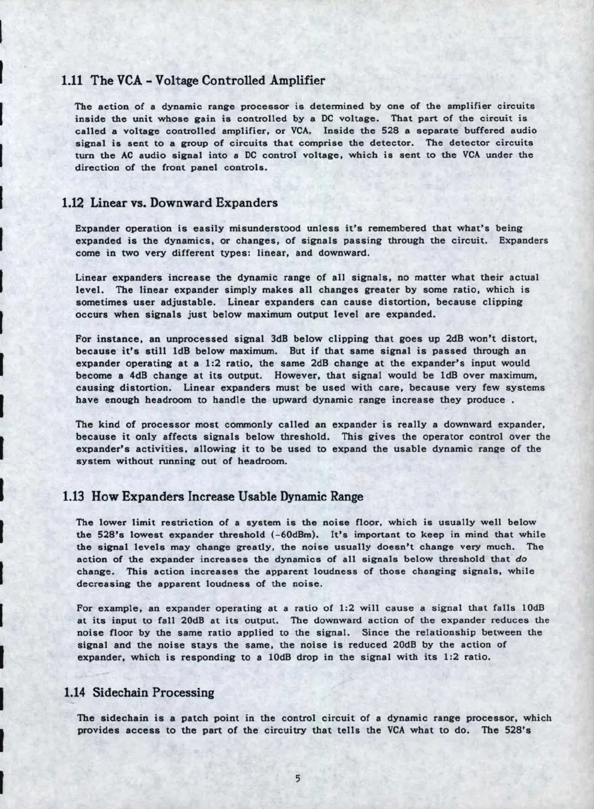 Symetrix 528 - The VCA - Voltaire Controlled Amplifier; Linear Vs. Downward Expanders; How Expanders Increase Usable Dynamic Ranae; Sidechain Processina